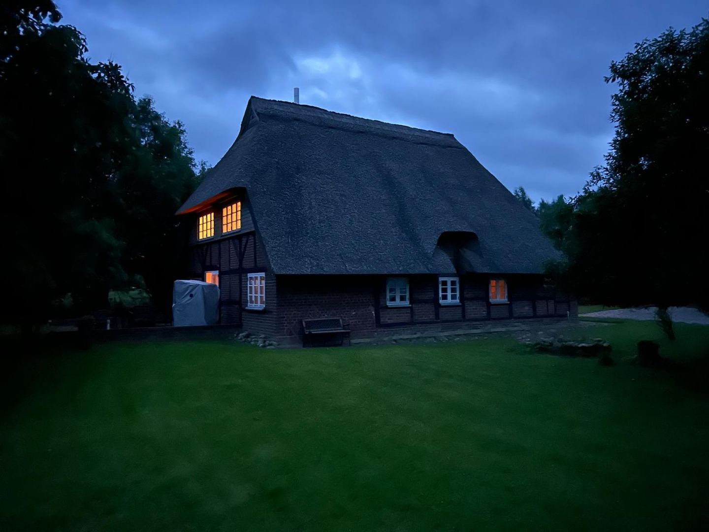 Romantisches Cottage unter Reet inmitten der Natur