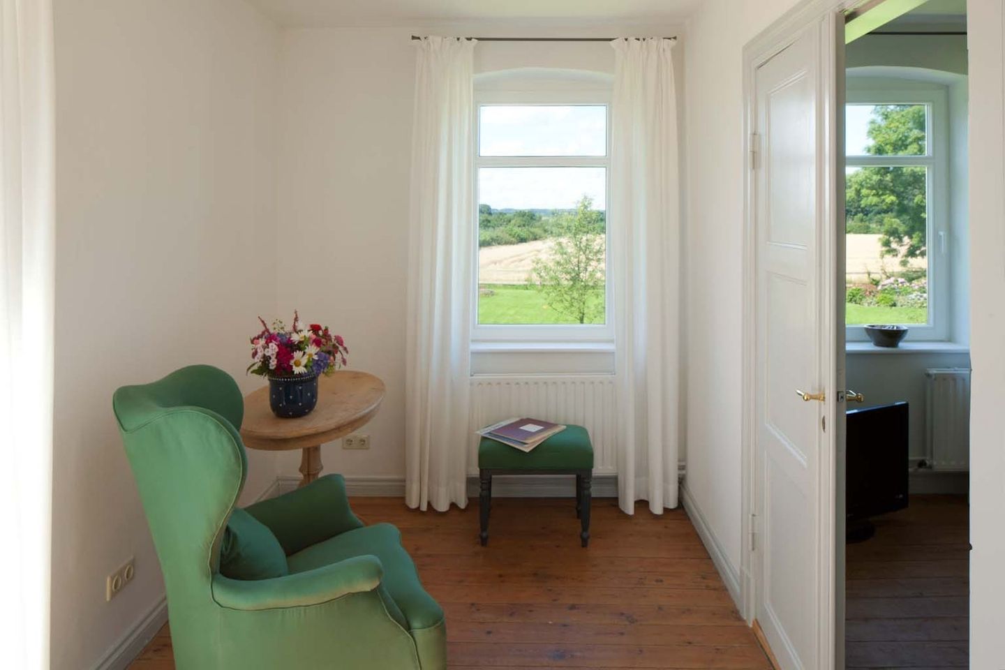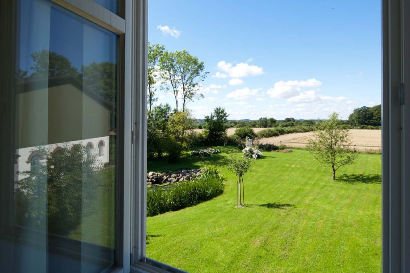 Die Ferienwohnung "Lake View" ist Teil der Hofanlage "Kiekut", ein liebevoll erhaltener ehemaliger Bauernhof in der Gemeinde Westerholz. Sie liegt im ältesten Teil des Hauses, der aus dem 18. Jahrhundert stammt, und verbindet historischen Charme mit modernem Wohnkomfort.