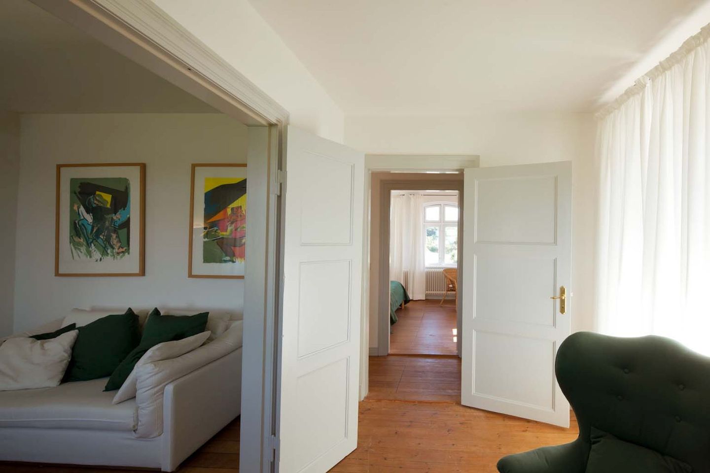 Der Hof besticht durch seine einmalige Lage nur 1000 Meter Luftlinie vom Ufer der Flensburger Förde entfernt. Der ruhige Naturstrand mit flachem Wasser ist in nur wenigen Fahrradminuten erreichbar und eignet sich ideal zum entspannten und sicheren Schwimmen. Geschützt wird die Bucht von einer Steilküste, die von einem wunderschönen Buchenwald bewachsen ist – ein perfekter Ort für Ruhe, Natur und Erholung.