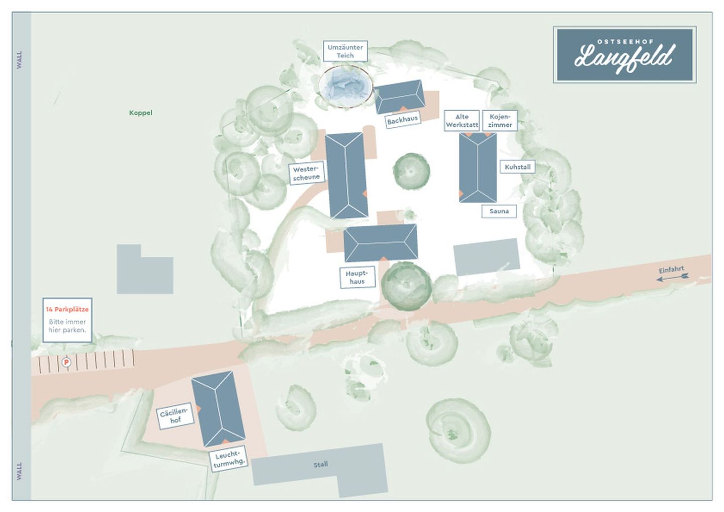 Eingebettet zwischen Stall und dem Ostseehof Langfeld liegt diese besondere kleine Wohnung mit traumhaftem Blick über die hauseigene Koppel auf den Leuchtturm von Falshöft. Die nach ihm benannte „Leuchtturmwohnung“ verfügt über ein geräumiges Schlafzimmer mit Doppelbett, einem großzügigen Badezimmer mit Badewanne und ein großes Wohnzimmer, das in die Küche mit Esstisch übergeht.