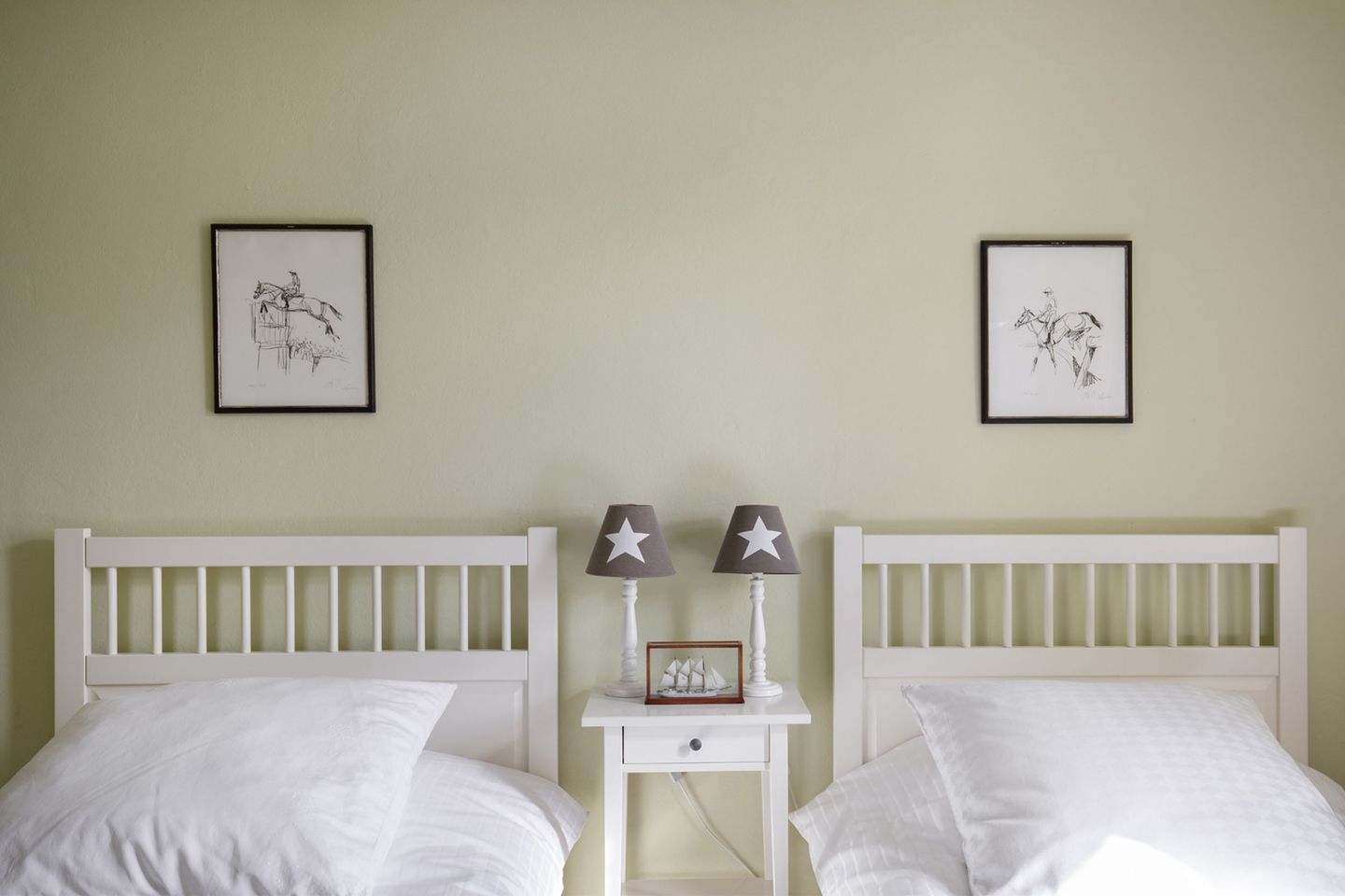 Das Haus bietet Platz für bis zu 14 Personen, aufgeteilt entweder in 7 Einzelzimmer oder bis zu 14 Personen in Doppelzimmern – mit insgesamt 4 Bädern. Es stehen außerdem großzügige Räume wie Wohnzimmer, Salon, Esszimmer und Wintergarten zur Verfügung, die sich gut für konzentriertes Arbeiten in kleinen Gruppen eignen. Eine voll ausgestattete Küche ermöglicht die individuelle oder professionelle Versorgung der Gäste.